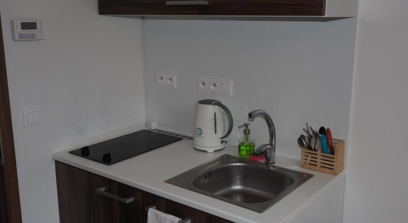 Studio Apartment. The apartment has 1 bedroom and 1 bathroom with a shower and free toiletries. In the well-fitted kitchen, guests will find a stovetop, a refrigerator, kitchenware and an electric kettle. Boasting a balcony with mountain views, this apartment also features a private entrance and a flat-screen TV with cable channels. The unit has 2 beds.