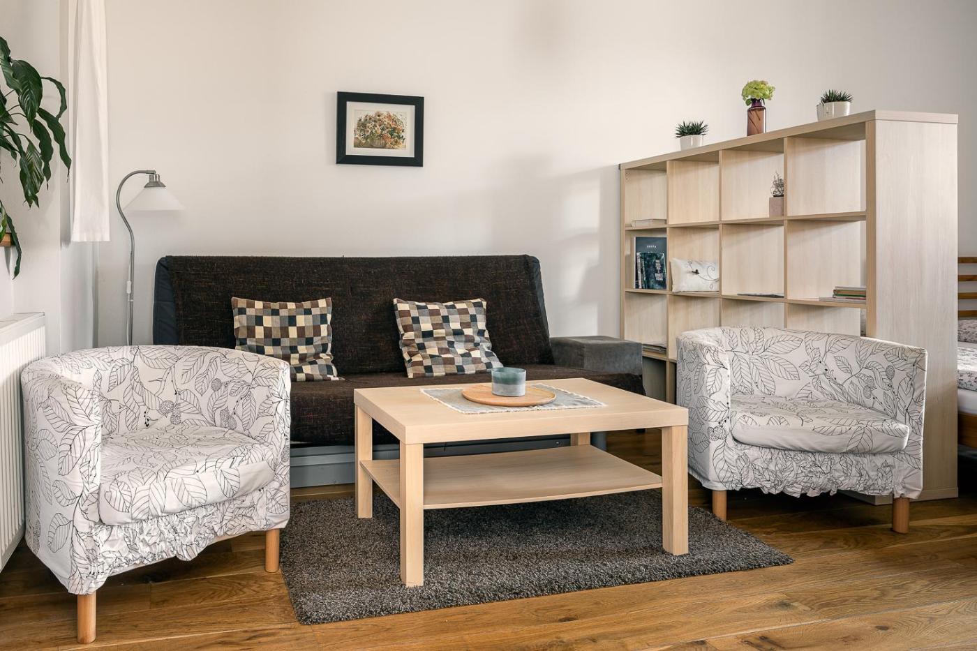 Two-Bedroom Suite. This spacious suite consists of 1 living room, 2 separate bedrooms and 1 bathroom with a shower and a hairdryer. Guests will find a refrigerator and kitchenware in the kitchenette. The suite also offers a barbecue. The suite features parquet floors, a seating area with a flat-screen TV, an electric kettle, a dressing room as well as garden views. The unit offers 8 beds. ;