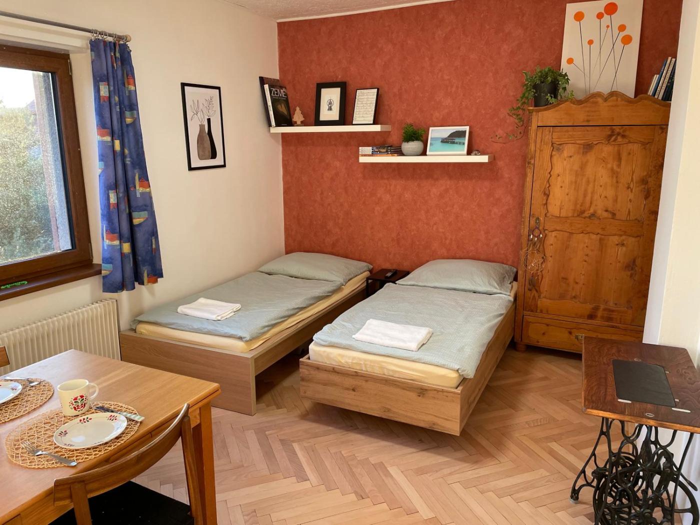Two-Bedroom Apartment. The apartment has 2 bedrooms and 1 bathroom with a shower and free toiletries. Meals can be prepared in the well-fitted kitchenette, which has a refrigerator, kitchenware, a microwave and a tea and coffee maker. The apartment features parquet floors, heating, as well as a balcony with garden views. The unit has 3 beds.
