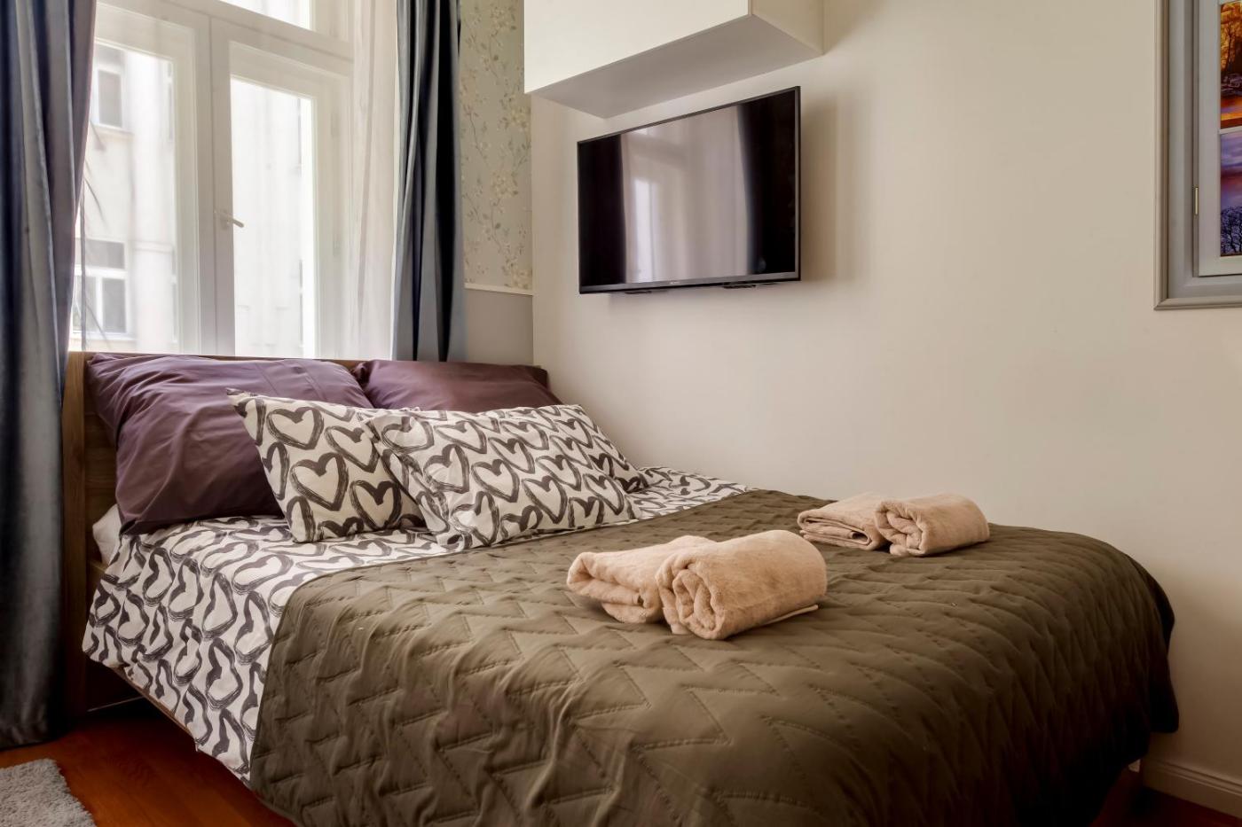 One-Bedroom Apartment. The apartment has 1 bedroom and 1 bathroom with a shower and free toiletries. In the fully equipped kitchen, guests will find a stovetop, a refrigerator, kitchenware and an oven. This apartment features a washing machine, soundproof walls, flat-screen TV with satellite channels, as well as fruit for guests. The unit has 1 bed.