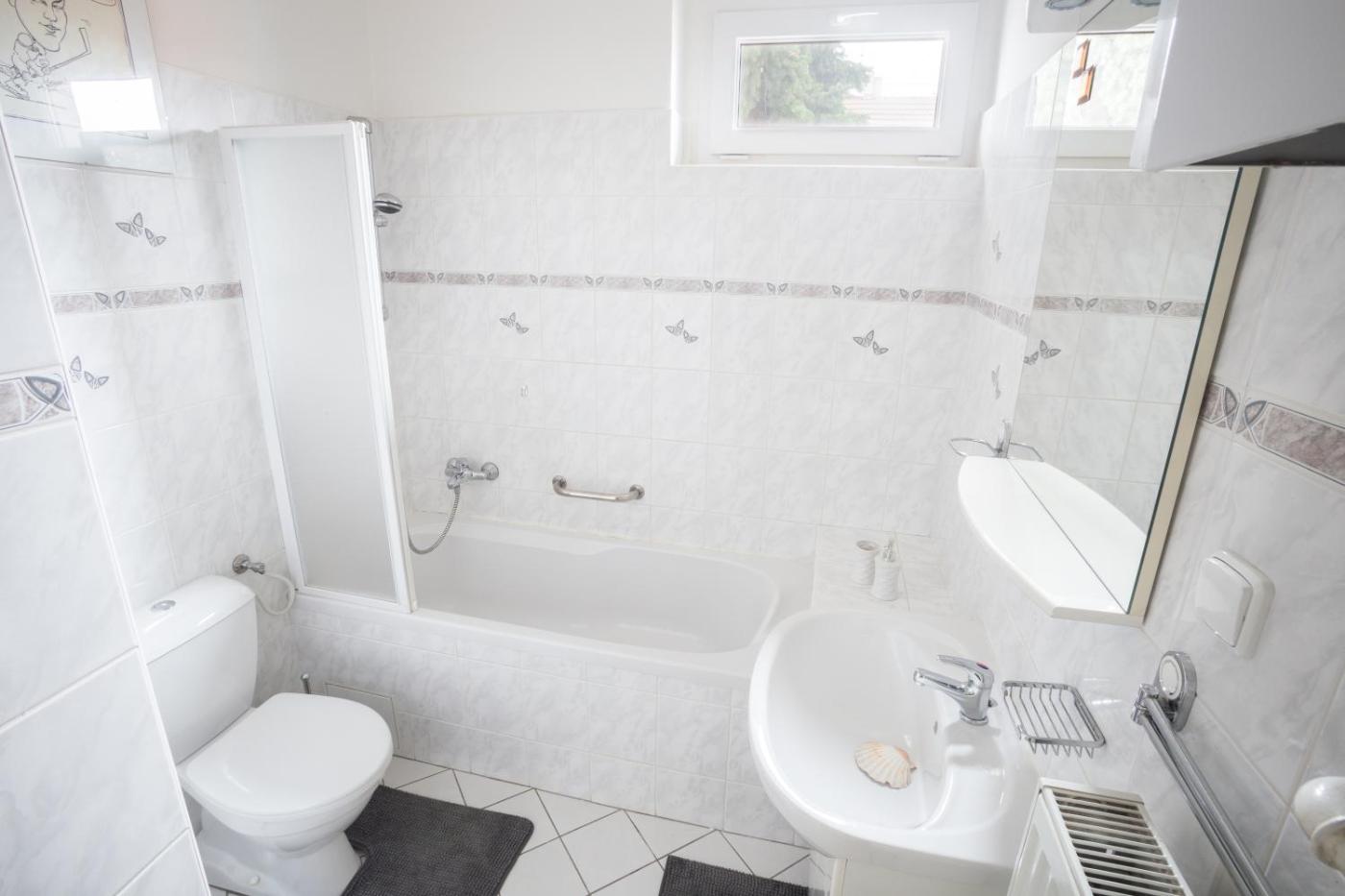 Two-Bedroom House. In this house guests will find a flat-screen TV and a seating area with a sofa. A full kitchen comes with an oven and a fridge, while a private bathroom comprises a bathtub, a shower and a hairdyer. An additional toilet and laundry facilities like a washing machine and a tumble dryer are also available.