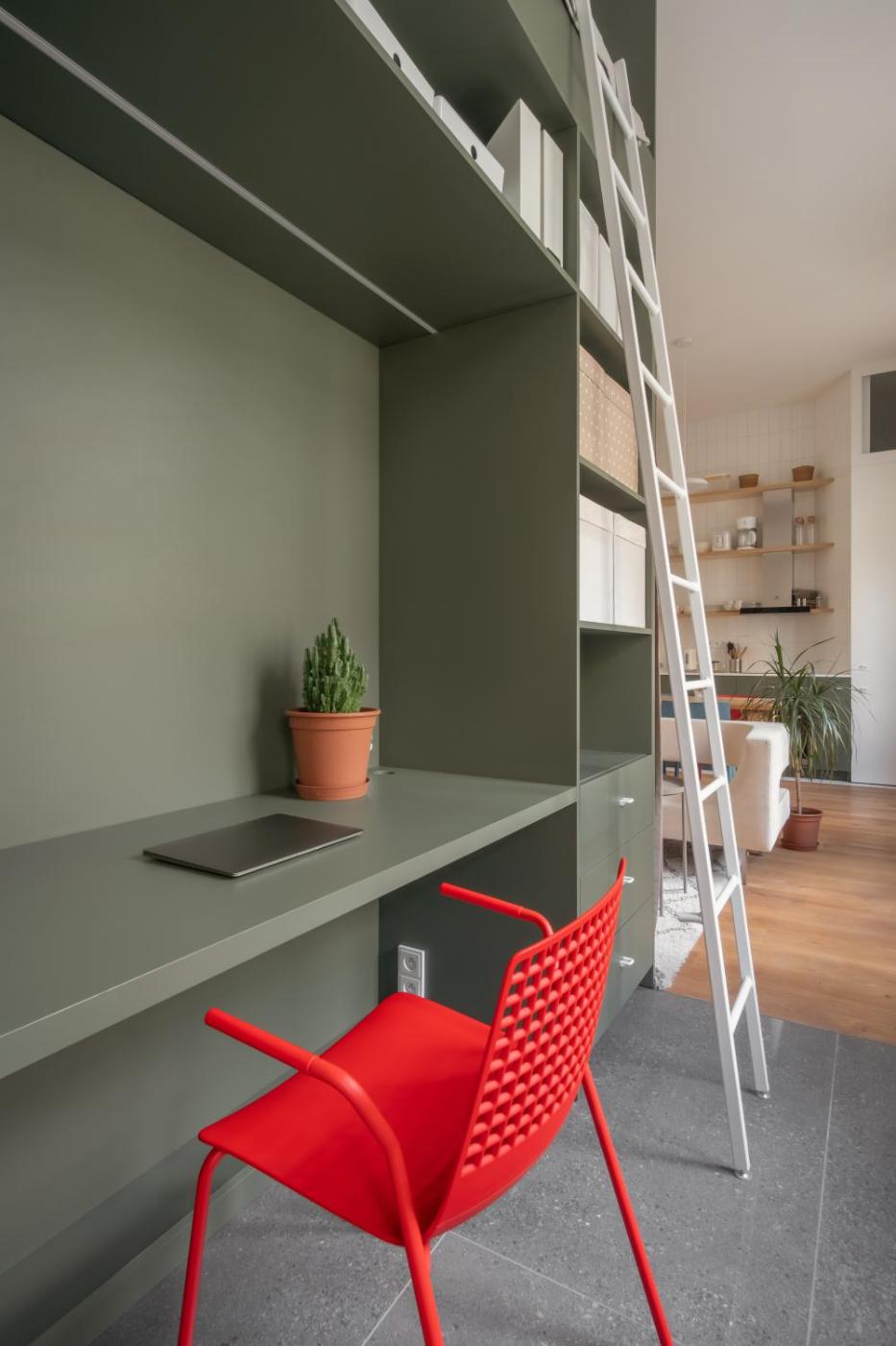 Studio Apartment. This apartment includes 1 living room, 1 separate bedroom and 1 bathroom with a shower and free toiletries. In the well-fitted kitchen, guests will find a stovetop, a refrigerator, a dishwasher and kitchenware. The apartment is furnished with a desk and a seating area and offers air conditioning, a washing machine and a quiet street view. The unit has 3 beds. ;