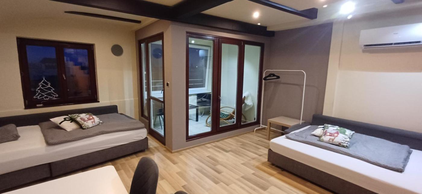 Apartment. This luxurious apartment provides a hot tub, a sauna and a fireplace. Featuring a private entrance, this spacious apartment also is comprised of 3 bedrooms, a seating area and 1 bathroom with a bath and a shower. In the kitchen, guests will find a stovetop, a refrigerator, a dishwasher and kitchenware. The air-conditioned apartment offers a flat-screen TV, a washing machine, a tea and coffee maker, a wardrobe as well as city views. The unit offers 7 beds.